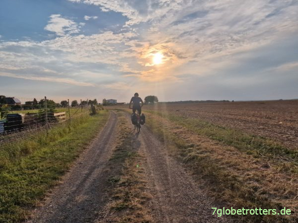 Heute nun geht’s wirklich los mit unserer „Tour de Mamie“. Mein Jüngster nimmt das Regenzeug und die schwere Essenstasche. Klamotten, Schlafsäcke, Isomatten und Zelt kommen in meine gerade erst reparierten Ortlieb-Taschen. Die Idee mit den Hängematten hat sich ja erstmal zerschlagen, denn mein ultraleichtes Lieblingszelt wiegt halb so viel wie 2 Hängematten mit Tarp.