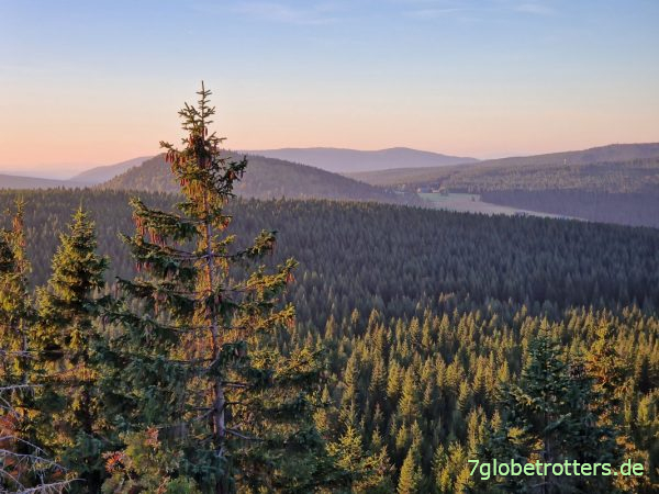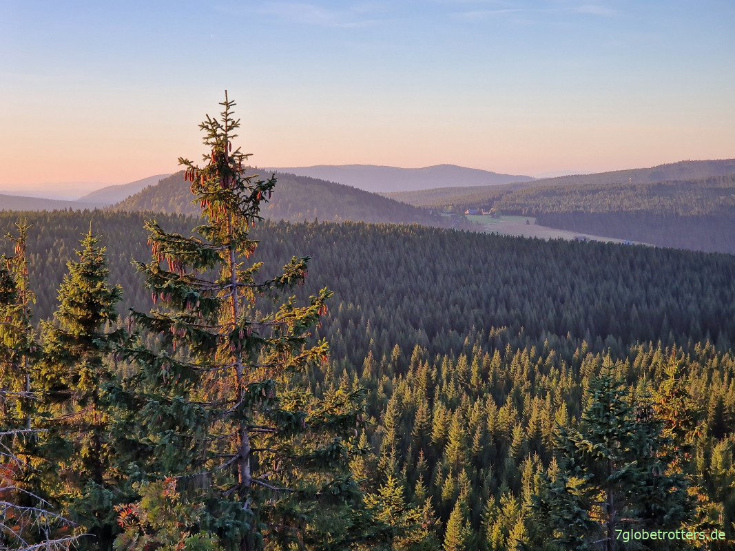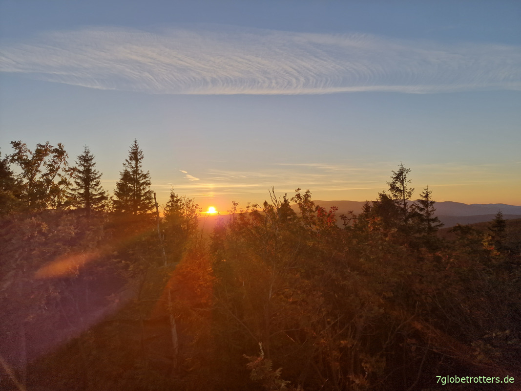 Und bald schon gibt es von oben am Felsen den Sonnenaufgang hinter dem Riesengebirge zu sehen.