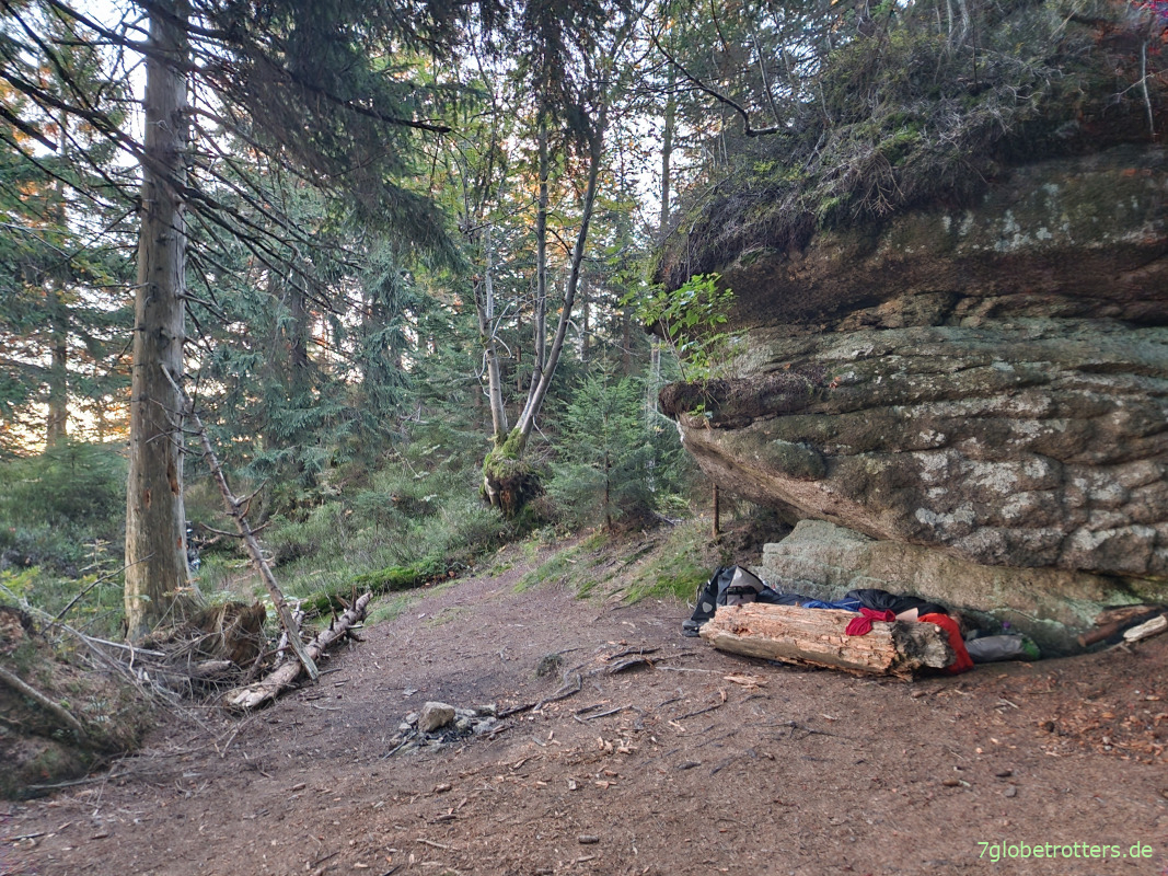 Geschlafen haben wir ja auf unserer Radtour ins Isergebirge hier unter diesem Felsvorsprung.
