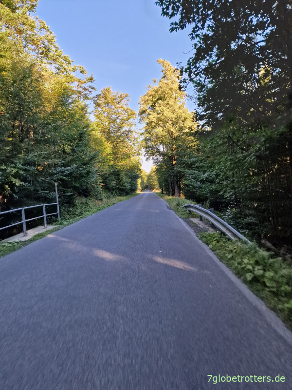 Wir fackeln also nicht lange und lassen uns nach 20 Minuten Frühstückspause die besten Serpentinen im Isergebirge runterrollen. Mein Jüngster ist schon leicht genervt von meinen Sicherheitshinweisen, dass er die innere Pedale hochmachen, auf Splitt aufpassen, vorsichtig bei nassen Flächen sein soll und so weiter. Dabei bin ich es, der viel schneller fährt und unterwegs noch mit dem Handy herumfummelt, um Fotos zu machen.