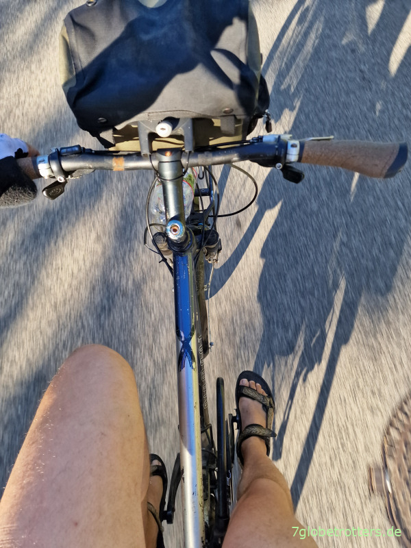 09:15 Uhr müssen wir uns erstmal ausziehen, denn es wird langsam richtig warm. Sieht man zwar nicht, aber die kurze Radhose habe ich schon noch an.