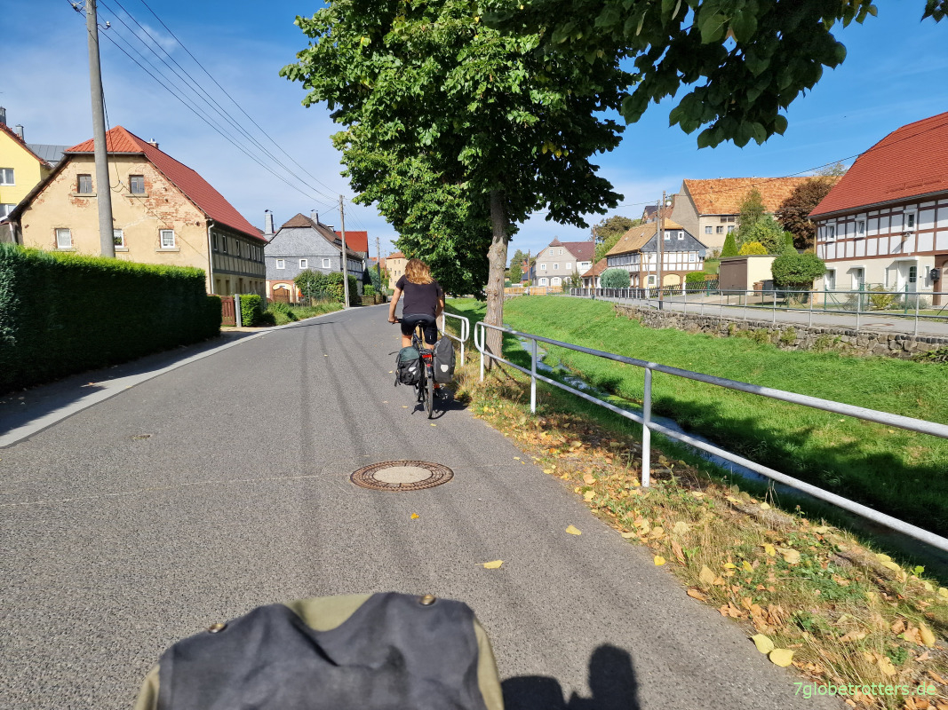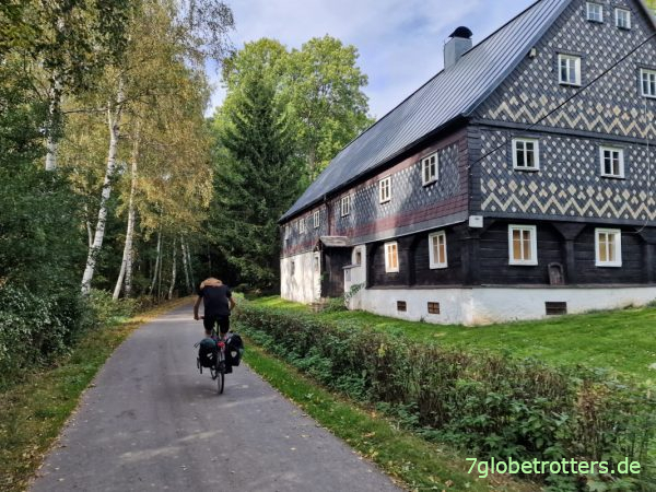 Unterwegs gibt es rechts und links der Mandau viele aufwändig sanierte Umgebindehäuser. Willkommen in der Oberlausitz.