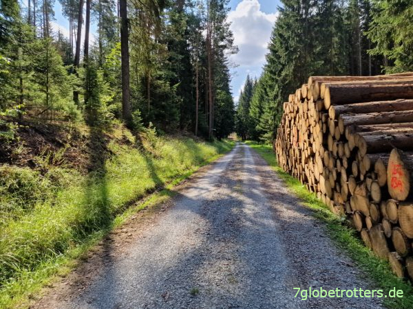 Mein Plan ist, noch über das Vogtland rüber zu kommen und auf der anderen Seite an der Talsperre Eibenstock zu zelten. Jedenfalls will ich es angesichts des drohenden Gewitters auf alle Fälle vermeiden, hier oben auf den höchsten Höhen des Vogtlands zu übernachten.