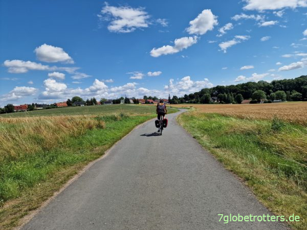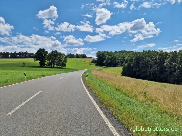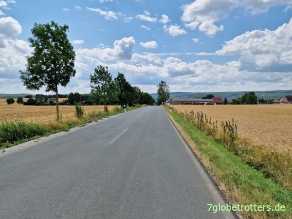 Aber die Autofahrer sind ausnahmslos sehr rücksichtsvoll, bremsen rechtzeitig ab, warten auf freie Sicht und überholen erst dann auf der Gegenspur. Scheint in Thüringen überhaupt keine Rowdies zu geben. Aber klar, am schönsten sind natürlich die einsamen Radwege.