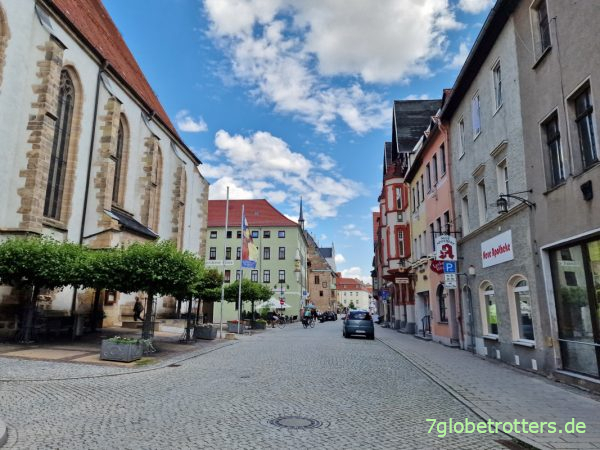 Unser Schnitt mit Pausen liegt so bei knapp 15 km/h. Das klingt nicht viel, aber bei 10 Stunden auf dem Rad kommt da schon was zusammen. Dumm ist nur, dass sich der Radwegeanteil doch sehr in Grenzen hält und manche Teilstücke ziemlich stark befahren sind. So wie rund um Neustadt an der Orla.
