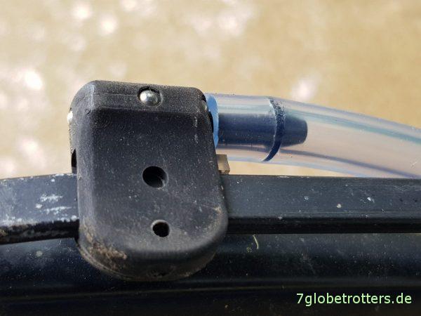 Die Doppelleitung mit den 6-mm-Schläuchen läuft jetzt direkt vom Wischwasserbehälter hoch zu den Wischerarmen.