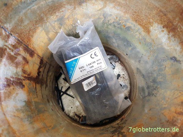 Zerreiße beim Festmachen 5 Kabelbinder. So ein Schrottzeug. Ab in die Tonne. Habe zum Glück noch ein anderes Päckchen.
