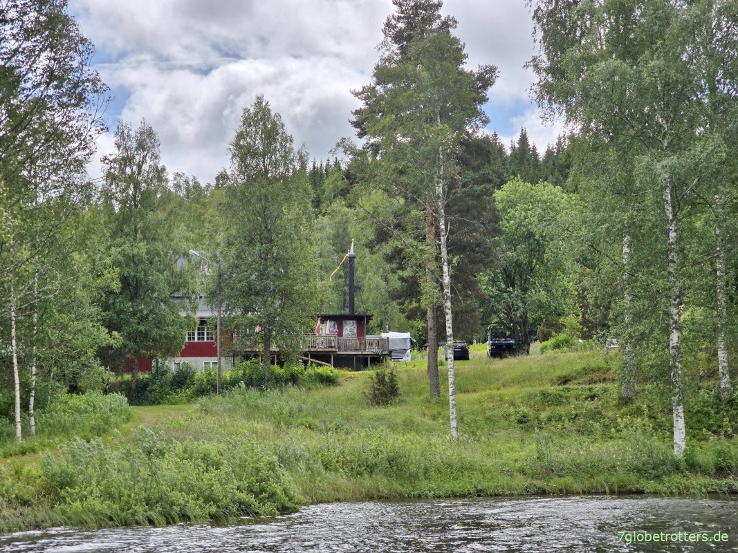 Also mein „Essen“ ist wunderbar. Fisch soll auch super sein, nur gibt es keinen Elchburger, sondern welche mit Rindfleisch. Der Wirt erklärt, dass zur Zeit Elche knapp sind, weil denen zu viele Jäger und Wölfe zusetzen. Am Ende ist der Gourmet im Wald mit 120 € für 5 Personen auch gar nicht sooo teuer. Gut, wir trinken nur Wasser, und das ist in Schweden kostenlos. Kostenlos sind aber auch die Vorspeisen sowie der Nachtisch mit Walderdbeeren vom See hinterm Haus.