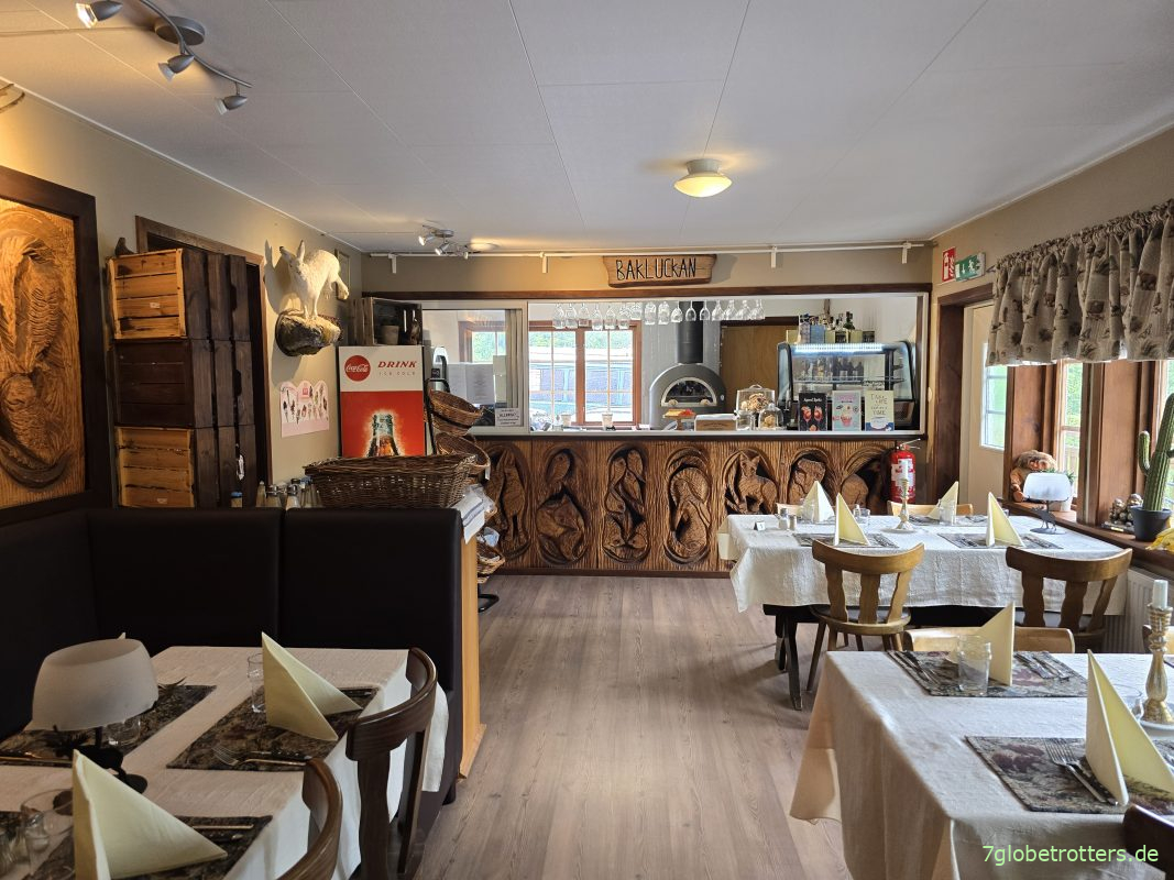 Kurz vor der norwegischen Grenze steht mitten im Wald ein schwedisches Wirtshaus. Sowas ist so selten, da muss ich anhalten. Schleiche mal auf Erkundung ins Värdshuset Tvällen Gunnarskog und prüfe, ob hier alle was zu Mittag finden könnten und ob ich mir das auch leisten kann. Ist ja eher so ein Jägerrestaurant für Wildbret, Fleisch und Fisch, wäre also nicht so direkt meine erste Wahl.