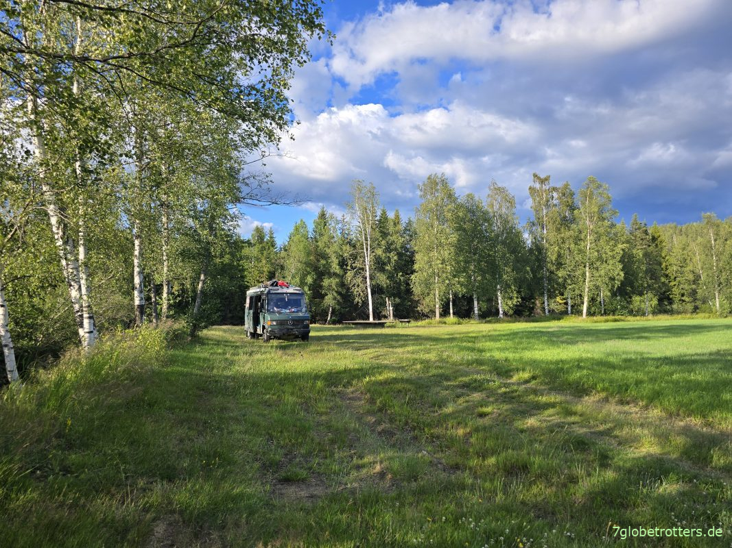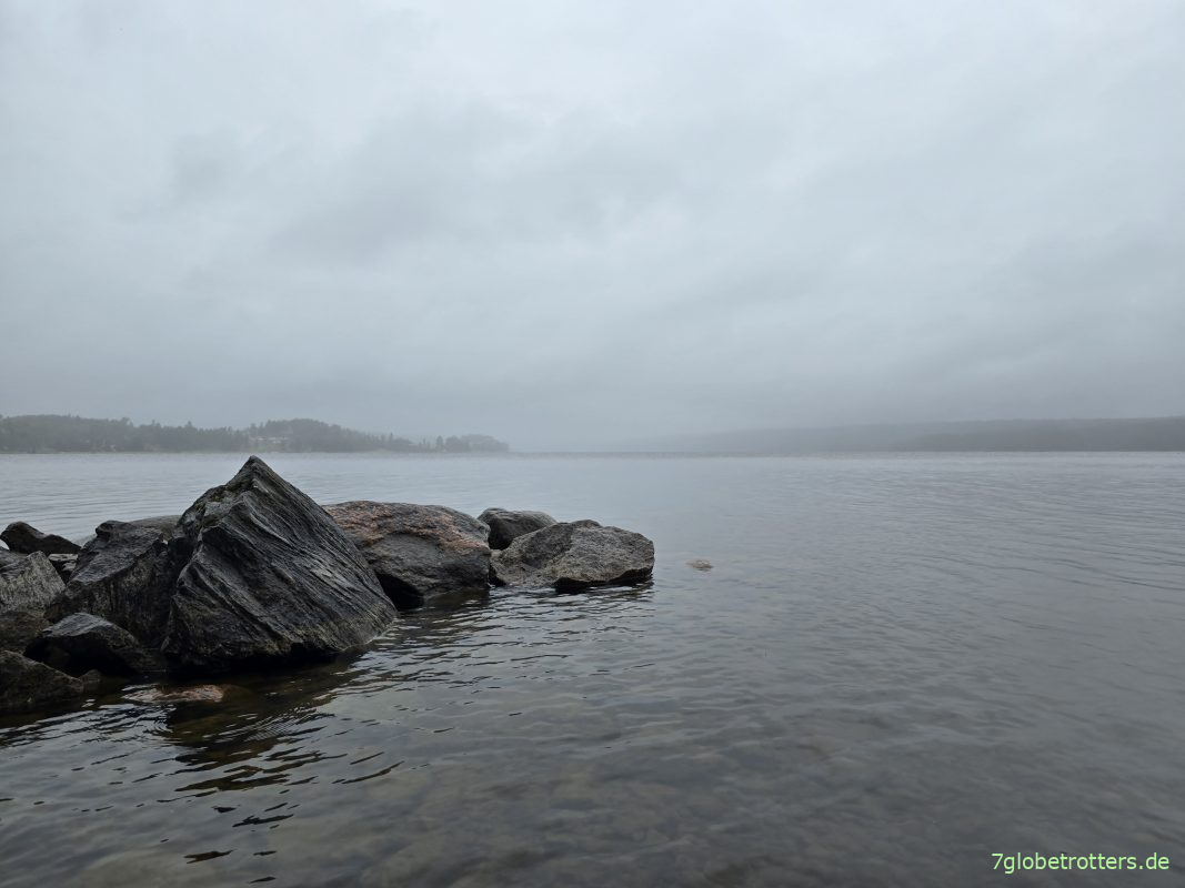 Es regnet und regnet und wir frühstücken extralang im Bus. Umso kürzer ist das Morgenbad im Frykensee.