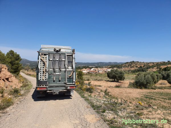 Ich räume derweil den Bus auf und mache mit den Reiseführern und Karten von Spanien ein bisschen Reiseplanung. So langsam müssen wir ja wieder nach Hause. Die Frage ist nur, wo wir möglichst unentdeckt langfahren und übernachten. Die Corona-Regeln gibt’s ja immer noch. Bis auf die Mossos in Katalonien hat uns zwar bis jetzt noch niemand erwischt. Aber das soll auch so bleiben.