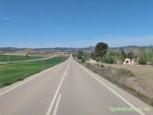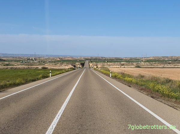 Auch die schnurgerade Straße durchs aragonische Hochland ist völlig ausgestorben.