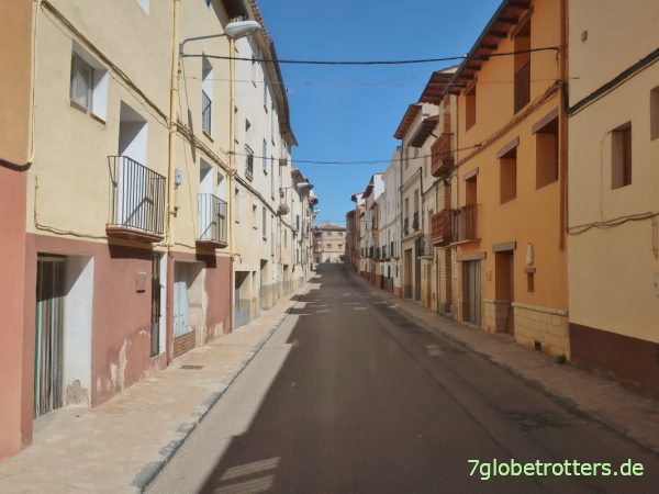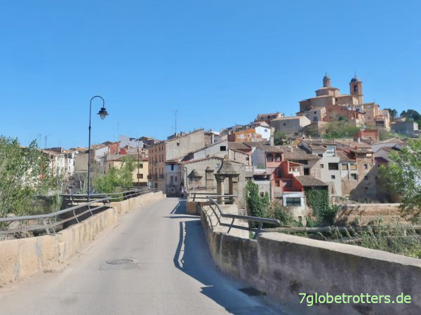 Castelserás ist auch hübsch. Zumal wir abseits der Hauptstraße über eine enge, uralte Brücke und kleine Sträßchen durch die Stadt fahren. Auch hier ist kaum jemand auf der Straße.