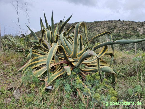Ich gehe ein Stück spazieren und finde eine dicke, gelb-grüne Agave. Mein Pflanzenfreund geht dann auch dorthin, um dieses Prachtexemplar zu begutachten sowie Respekt und Zuneigung auszudrücken. Aber nein, die nehmen wir nicht mit. Noch nicht einmal Absenker.