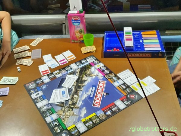 Während ich also allein oben im Aufstelldach verschwinde, spielen die beiden noch zu Ende und machen dann alles für die morgige Gewaltetappe bereit. Dazu gehört der Umbau der Sitzgruppe, damit sie morgen früh noch liegenbleiben können.