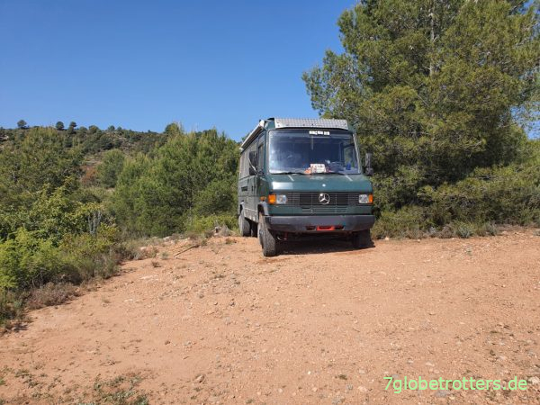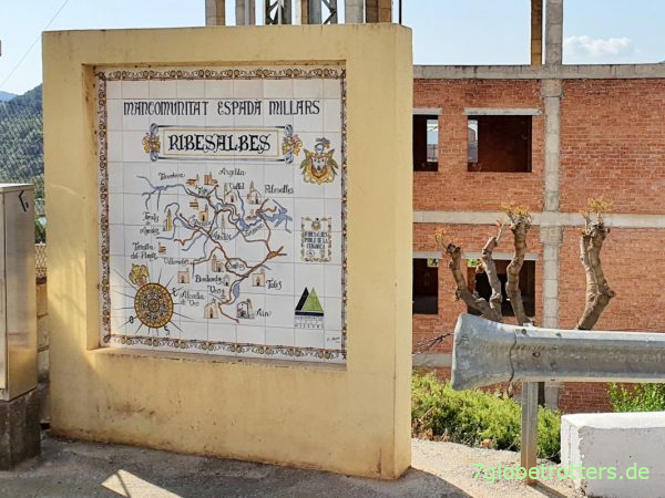 Dann los. Erster Gang. Vollgas. Ohne Probleme schiebt sich der Bus die steile und geröllige Piste durchs Unterholz hoch auf die Straße. Da geht sogar noch mehr. Ach, so ein schönes Auto. Dann rollen wir langsam durch Ribasalbes. Selbst die Jungs sind sehr verliebt in diese schöne Stadt. Für die Region scheint bemalte Keramik typisch zu sein. Überall gibt es verzierte Fliesen an den Häusern.