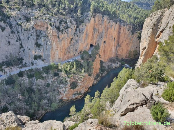 Nur leider herrscht heute rings um die Thermalquelle Montanejos Massenandrang. Alle Parkplätze in der engen Schlucht sind prallvoll gefüllt. Dazu ist eine entsprechende Menschenmenge unterwegs. Klar, heute ist Ostermontag. Und klar, wir haben in der letzten Woche quasi keine Leute gesehen. Da ist das schon ein Schock und ich fahre erstmal am Ort vorbei.