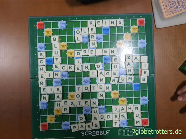 20:30 Uhr sind wir wieder oben am Bus und spielen Skat. Erst haben die Jungs keinen Hunger und dann doch. Essen also die restlichen Nudeln auf. Zum Abschluss gibt es noch eine Runde Scrabble und um 23:00 Uhr ist Ruhe im Karton.