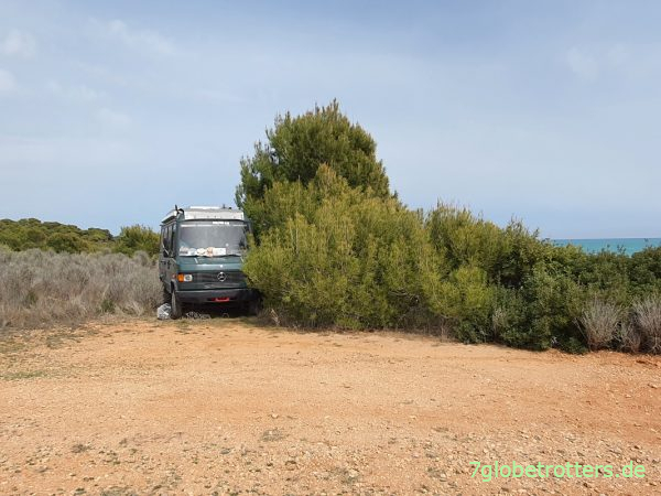 Ist schon erstaunlich, dass wir jetzt schon den vierten Tag völlig unbehelligt hier auf dem einsamen Stellplatz am Meer stehen. Corona-Ausgangssperre? Schutzverordnung? Maskenpflicht? Abstandsregeln? Was ist das? Hier gibt es nur Meer, Felsen und Gebüsch. Trotzdem oder gerade deswegen sehr erholsam.