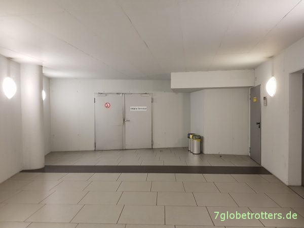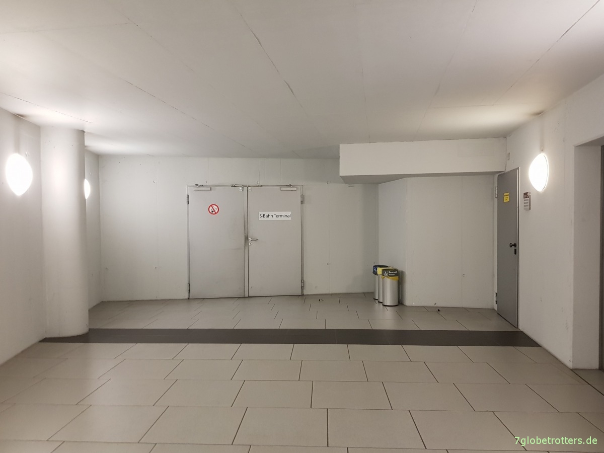 Doch dann gibt es noch ein versöhnliches Ende am Flughafen: Entdecke eine unscheinbare Brandschutztür mit der Aufschrift „S-Bahn Terminal“.
