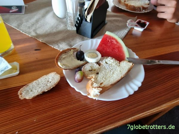 Dafür, dass wir gestern nach der Tour über den Keilberg schon 22 Uhr im Bett waren, sind wir echt spät wach. Das waren mal eben 10 Stunden Schlaf. Los, wir haben jetzt keine Zeit mehr aufzuräumen, denn Frühstück gibt es nicht ewig.
