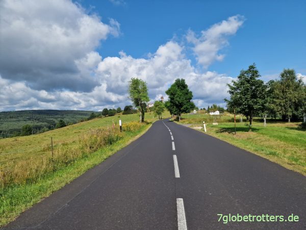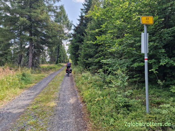 Hier oben auf dem tschechischen Erzgebirgskamm war ich komischerweise noch nie. Doch es fährt sich wirklich gut. Gestern hatten wir ja so bisschen eine Krise mit dem schlechten Radweg D23, die aber durch gute Motivation überwunden wurde.