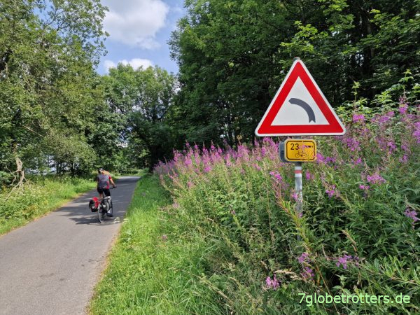 Heute früh läuft sogar warmes Wasser, aber nochmal duschen wäre Verschwendung. Also direkt los auf den Radweg D23, der hier eine Straße ohne Autos ist.