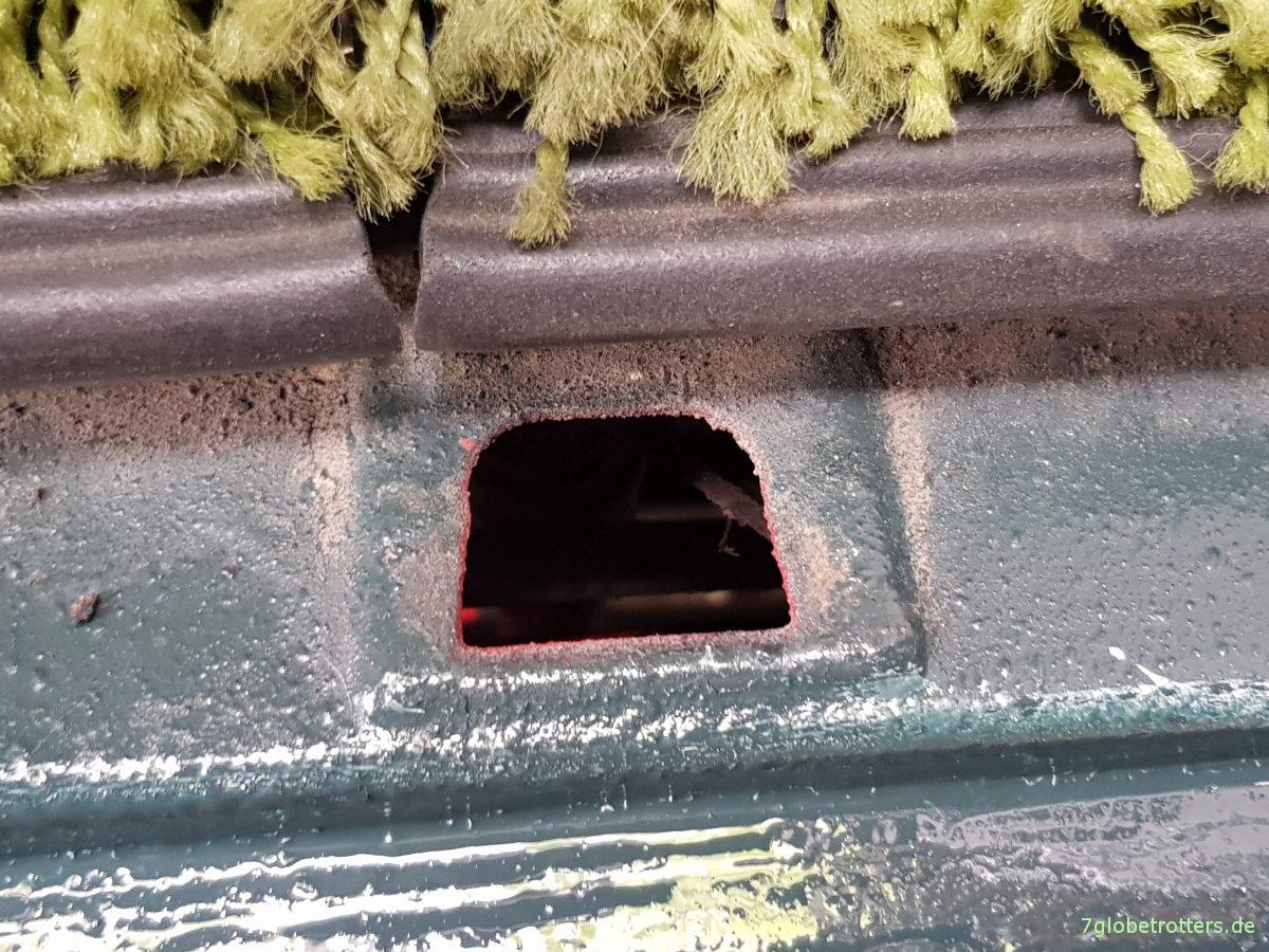 Allerdings sollte die Hecktür funktionieren. Raus kommt man derzeit ganz gut. Aber nicht mehr rein. Nichts zu machen. Das Schloss der Hecktür klemmt. Fummel mal am Mechanismus herum. Da löst sich die Falle nicht mehr, wenn man außen auf den Knopf drückt. Von innen geht es gerade noch so, aber schwergängig. Von alleine bewegt sich der Mechanismus der Türverriegelung nicht mehr.